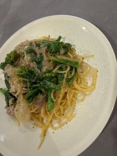 菜の花と豚肉と新玉ねぎのパスタ