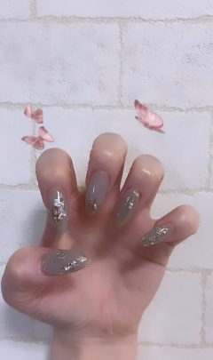 秋なので落ち着いたグレージュにニュアンスネイル?