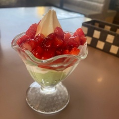 ピスタチオと苺のパフェ食べた?
