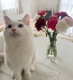 カーネーションも似合う猫