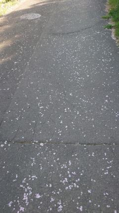 道にまだ花びら