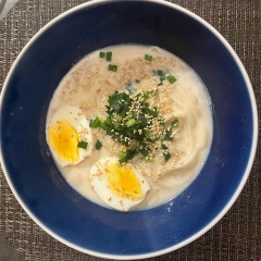 代わりにうどんにニラを入れたすみれです
