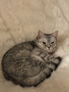 ソファ用のフカフカの白いカバー届いたから被せてみたら、ありにゃん?のお気に入りスポットになった?