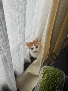猫がカーテンの隙間に入ってました