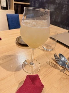 まずは自家製ジンジャーの白ワイン(割り?)