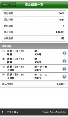 この画像は東京12Rが負けたので適当に京都12Rを買った画像です。
